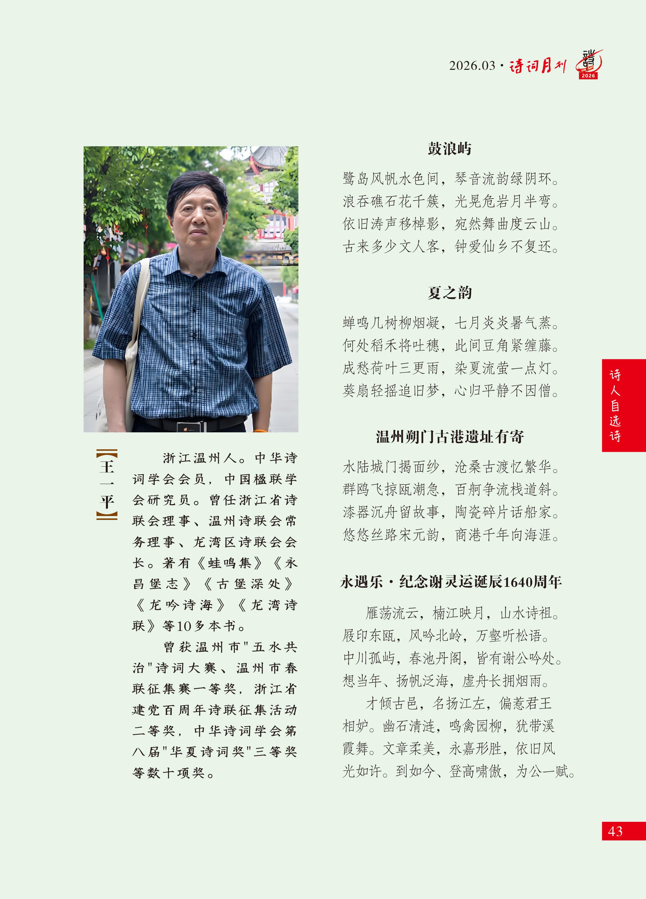 诗人自选诗—王一平